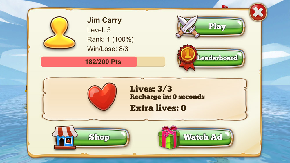 Prepare to feel the excitement of the classic Battleship game. Play with your fellow pirate friends, locally or online. Show who’s the real captain by climbing up the leaderboards!