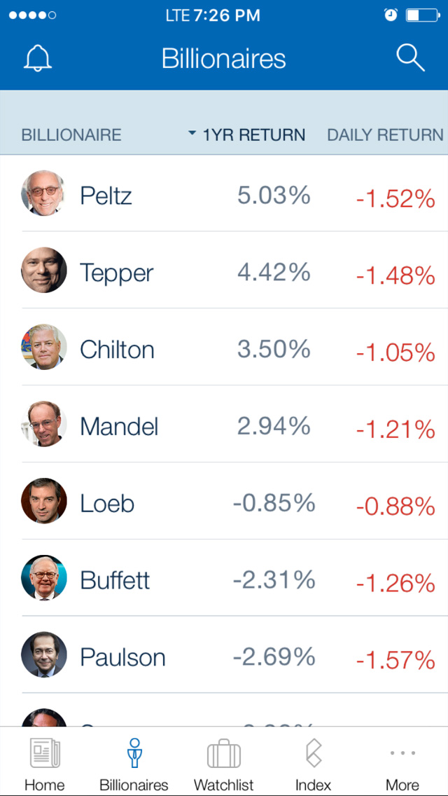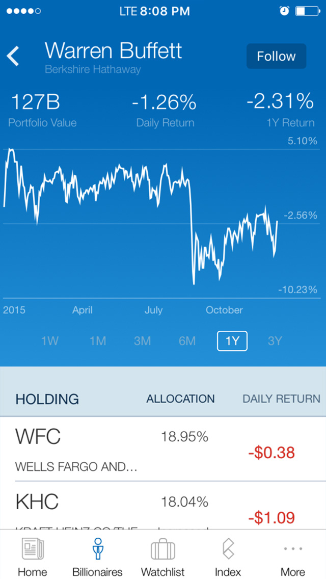 The app provides key insights into the investment strategies of leading hedge fund managers to help individuals confirm ideas, discover opportunities and compare their portfolios with the billionaires.