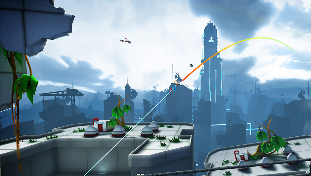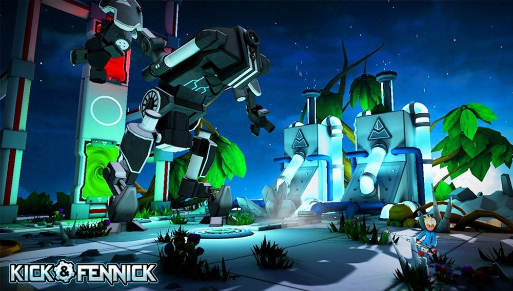 Soon after waking up in a desolate but colorful world, Kick meets a small flying robot named Fennick. When Fennick saves Kick from a menacing guard robot, they find out Fennick’s battery is broken. Together, they embark on an adventure to the Core Tower to find Fennick a new energy core.